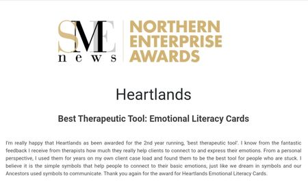 AWARD WINNING Heartlands Emotional Literacy cards are a therapeutic tool to help clients to connect to & express their emotions in ther own narrative. They are 44 simple symbolic images that connect to our deeper self. They were designed & created by me, Lynnette Hart, in 2005, a former NHS counsellor. They are in use by counsellors, psychotherapists, mental health workers & support workers in many public, social & voluntary settings.